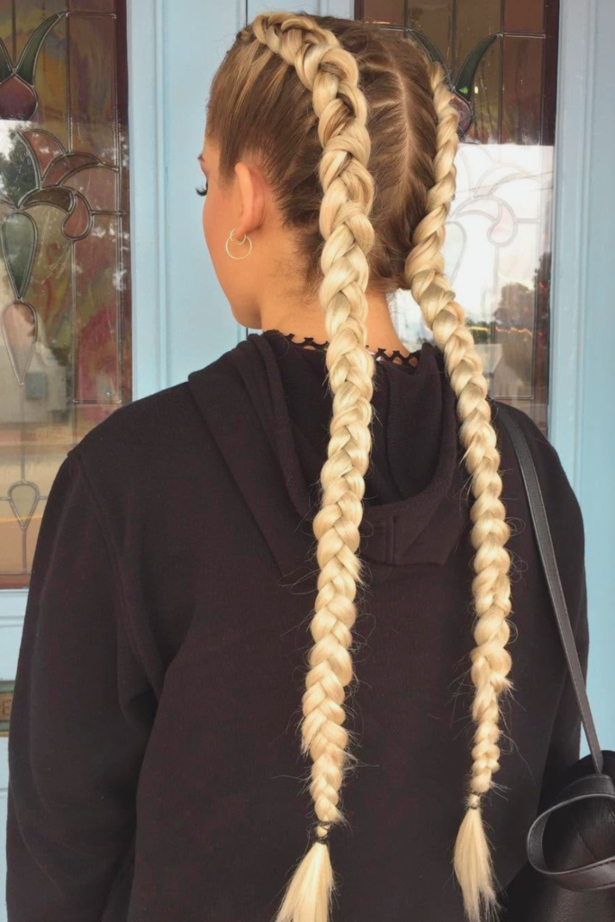 Boxer braids are functional yet stylish, making them perfect for active summer days. These sleek braids hold your hair in place and resist frizz, making them ideal for workouts, hiking, or outdoor adventures.
