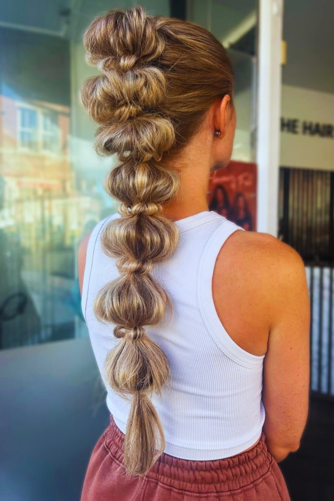 The bubble ponytail is one of the most creative trendy summer hairstyles right now. It’s fun, energetic, and makes a statement without much effort.