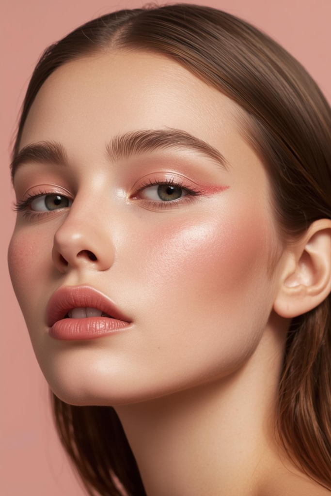 Peach-toned blush paired with soft bronzer creates a warm, sun-touched finish. Add glossy lips and light mascara for balance.