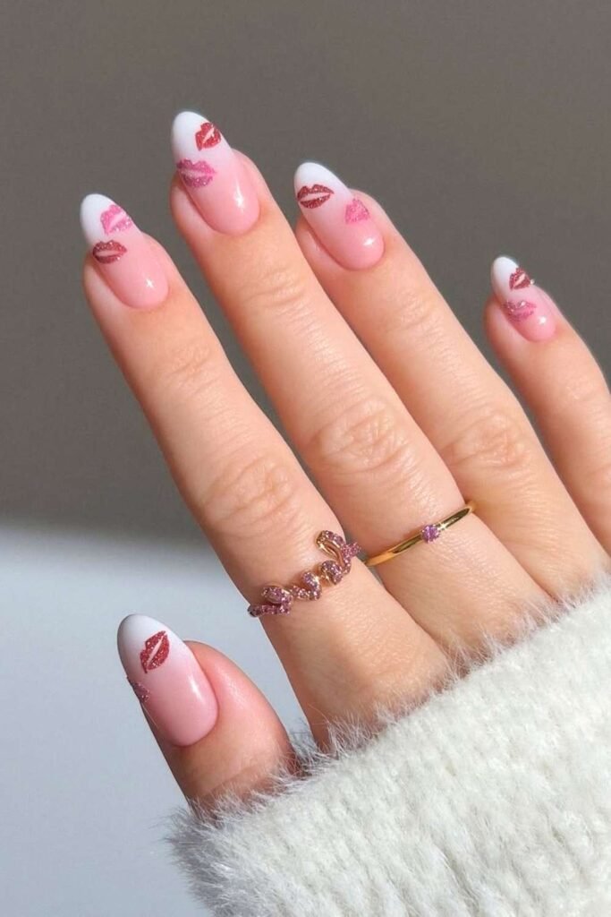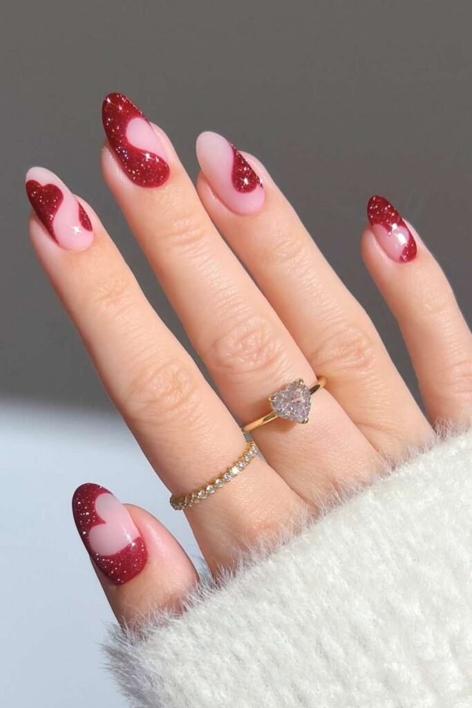 Glitter never goes out of style for Valentine’s Day. A subtle glitter accent nail paired with pink or red shades adds sparkle without looking overdone.