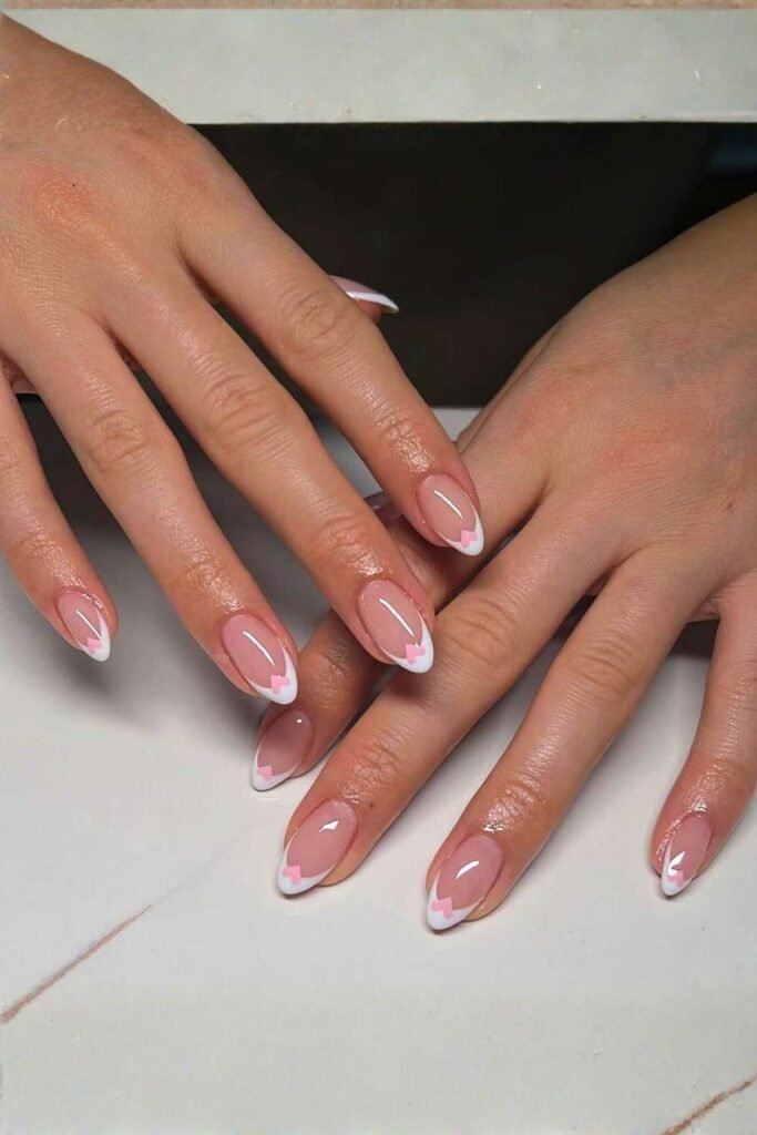 Soft Pink French Tips With Hearts
